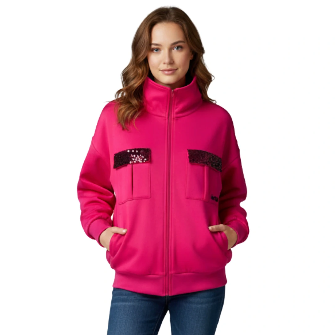 Blusa +QV Cruz Pink com Cristais Brancos - Manga 7/8
