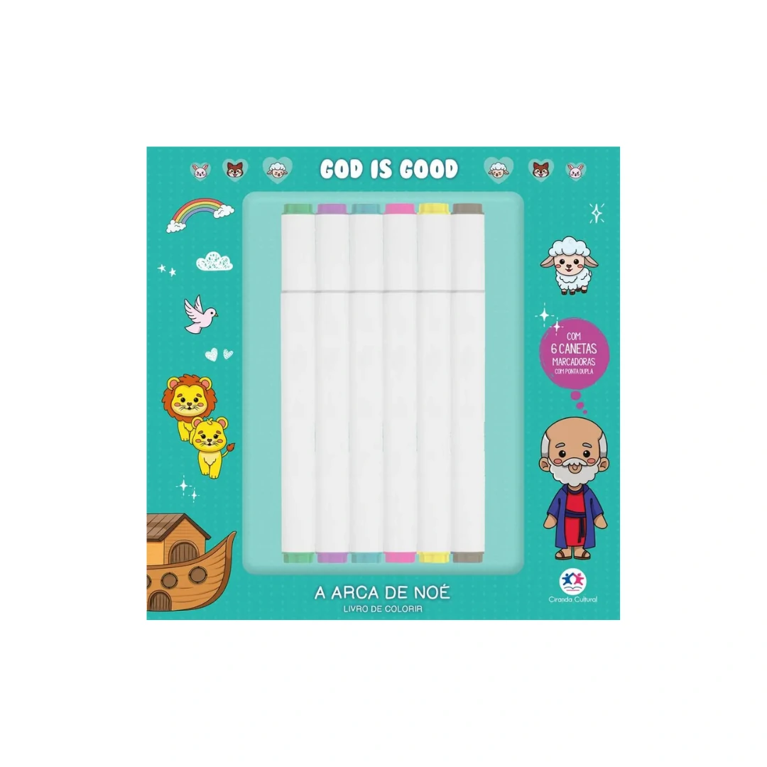 Inspirado no fenômeno dos livros de colorir para relaxamento do TikTok, o livro A arca de Noé, da coleção God is good, vem com 6 canetas marcadoras com ponta dupla e é perfeito para quem ama transformar momentos simples em uma verdadeira experiência calmante. Impressas em papel de alta gramatura, para garantir melhor qualidade de pintura, as 48 páginas com 23 ilustrações exclusivas e uma página para você testar suas cores e texturas favoritas retratam momentos cotidianos e aconchegantes, permitindo que você explore sua criatividade ao máximo.