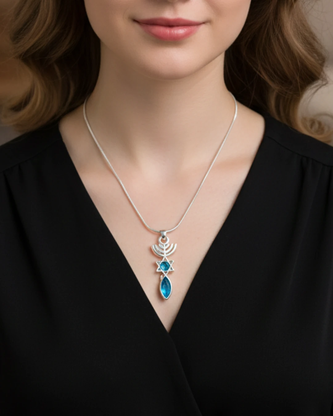 CORRENTE COM PINGENTE SIMBOLO MESSIÂNICO, IMPORTADA DE ISRAEL. Modelo banhada a prata. TAMANHO DA CORRENTE 50CM.